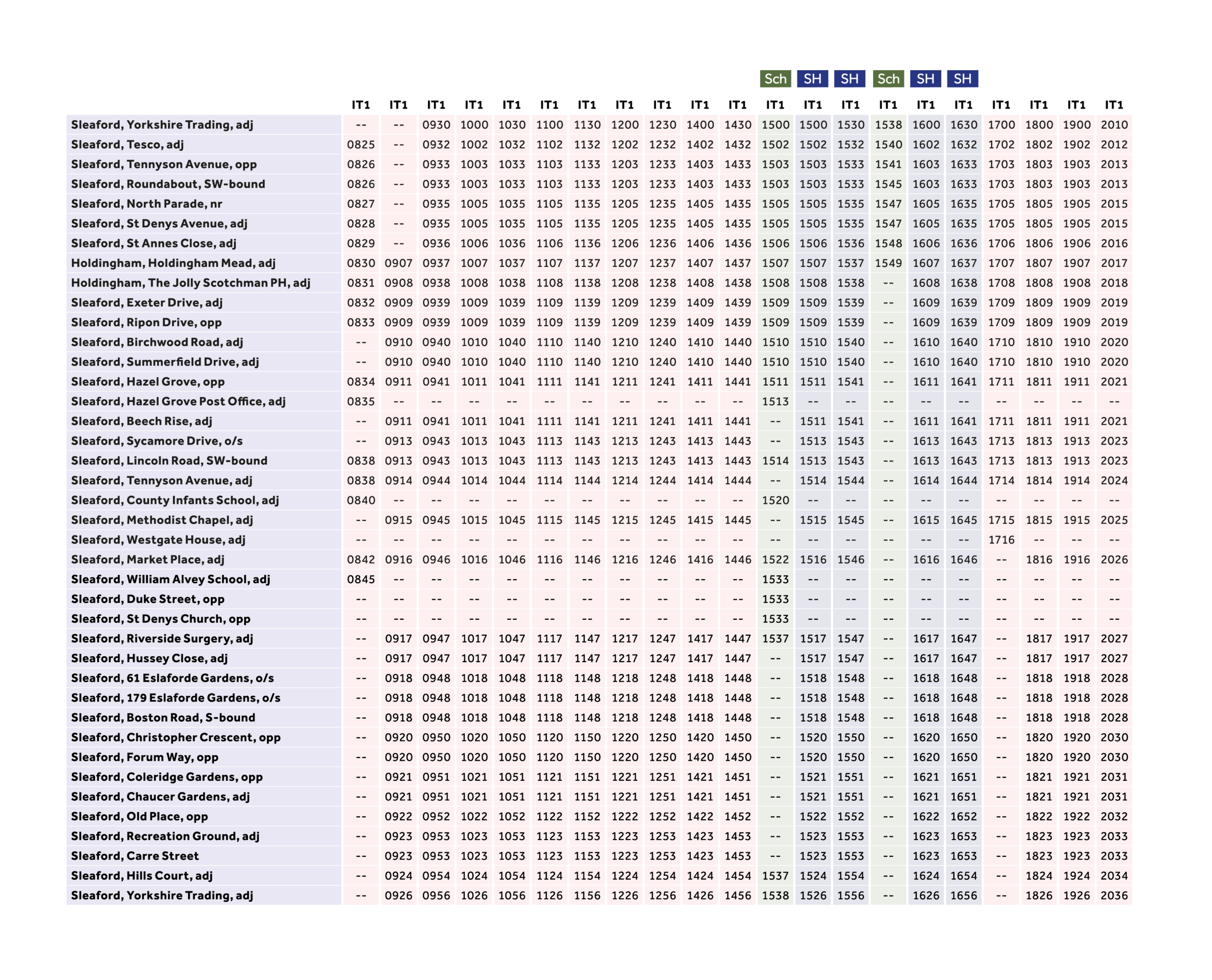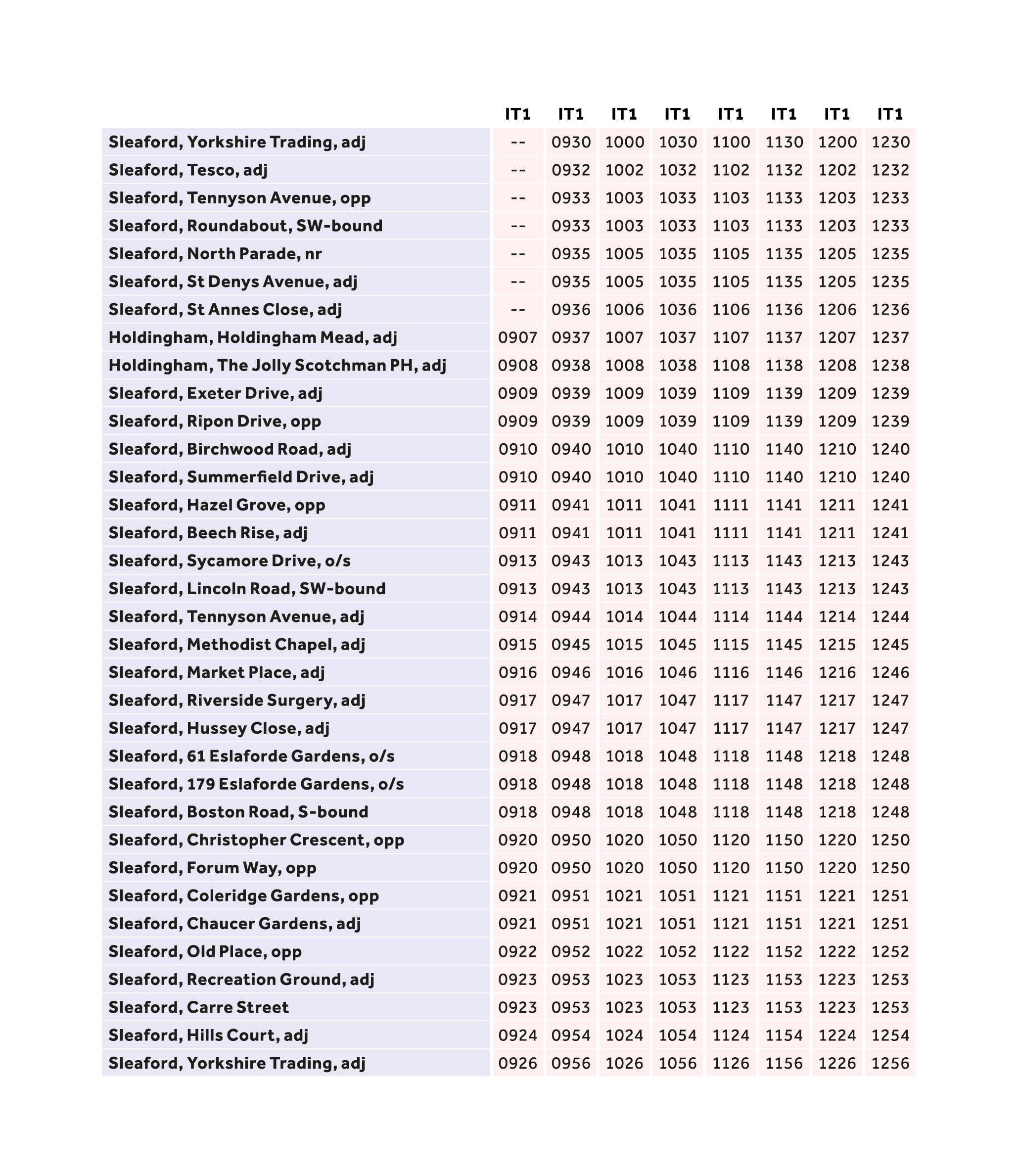 Including Sleaford Market Place, Yorkshire Trading, Tesco, Riverside Surgery, Greylees and more stops